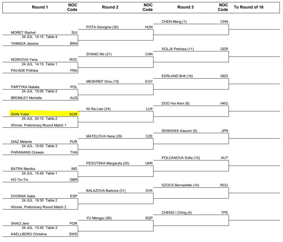 신유빈은 오늘(24일) 일본 도쿄 메트로폴리탄 짐나시움에서 열린 도쿄올림픽 탁구 여자 단식 1라운드에서 가이아나의 첼시.